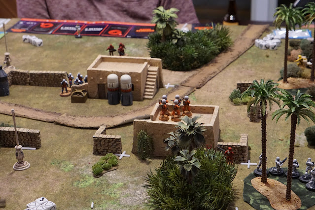 | One of the objectives controlled by our team, with our own Ensign Packman guarding the cargo boxes surrounding it, a prime target (and source of victory points) for the invading pirates. |
